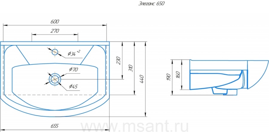Умывальник Элеганс 65