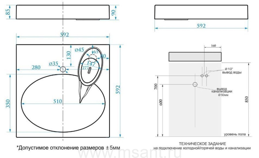 Умывальник на стиральную машину Azario Elegance 59.2х59.2х9 Белый (CS00078300)