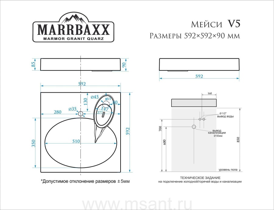 Умывальник на стиральную машину MARRBAXX Смайл V55 598х550x80