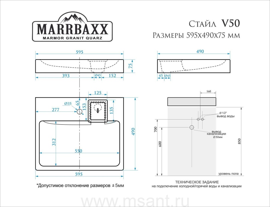 Умывальник на стиральную машину MARRBAXX Стайл V50 598х500x75