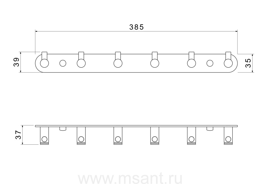 AquatekAQ4124BGM ЕВРОПА планка с 6 крючками, шлиф. черный хром