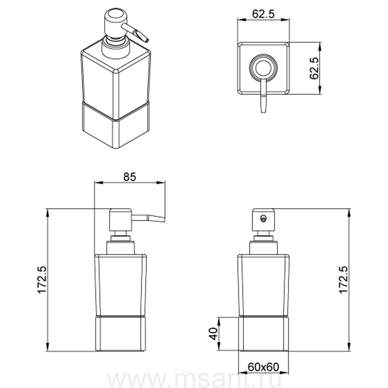 Дозатор жидкого мыла AZARIO RINA 200 мл. стеклянный настольный, хром (AZ-130C)