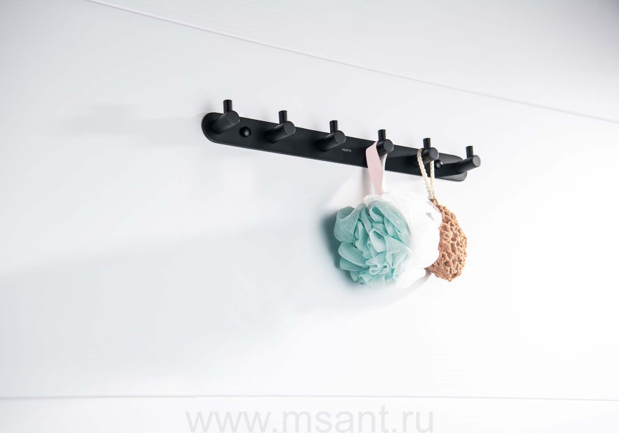 Планка с 6 крючками AQUATEK, матовый черный AQ4124MB ЕВРОПА