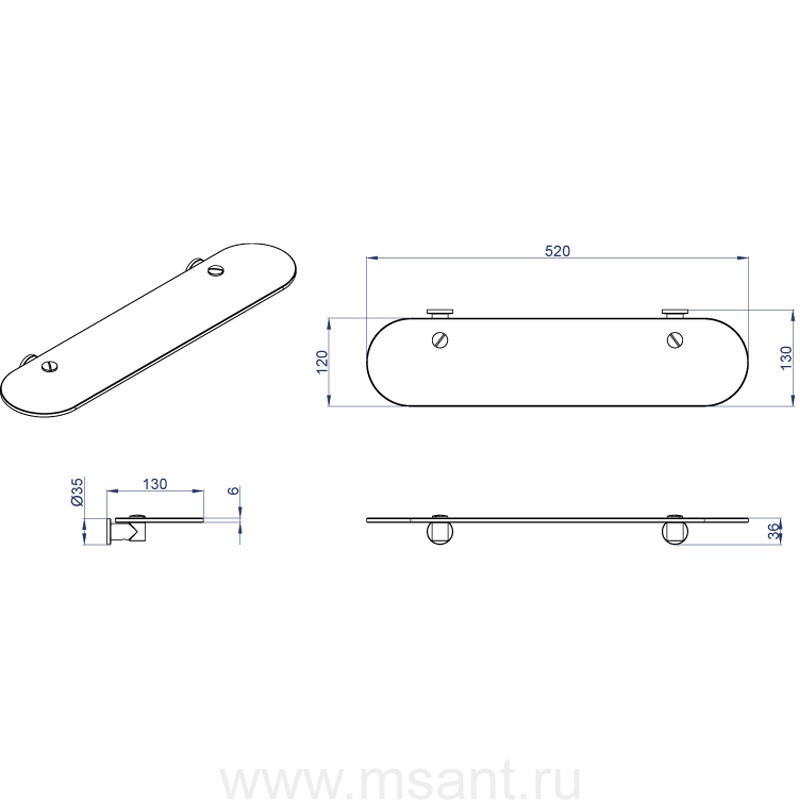 Полка AZARIO FORNY стеклянная 52 см, хром (AZ-88303)