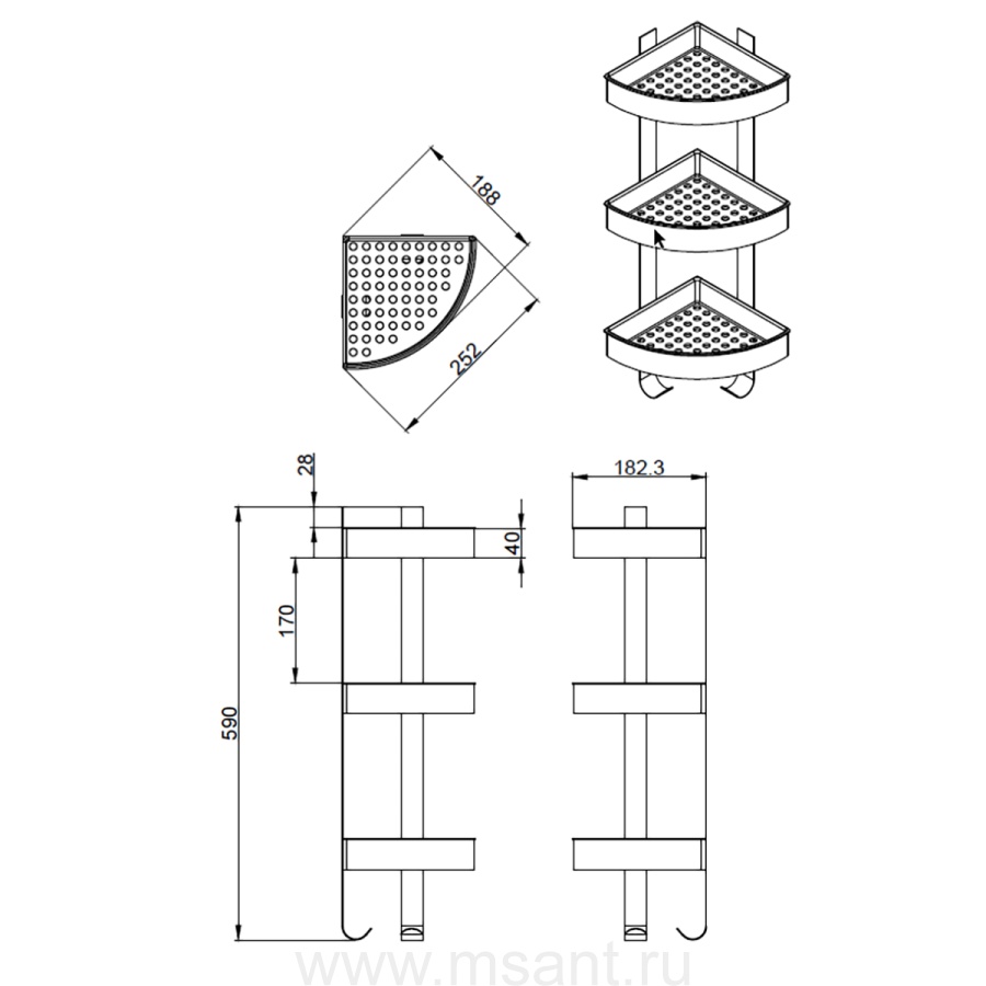 Полка угловая Azario трехэтажная, хром (AZ-833-3)