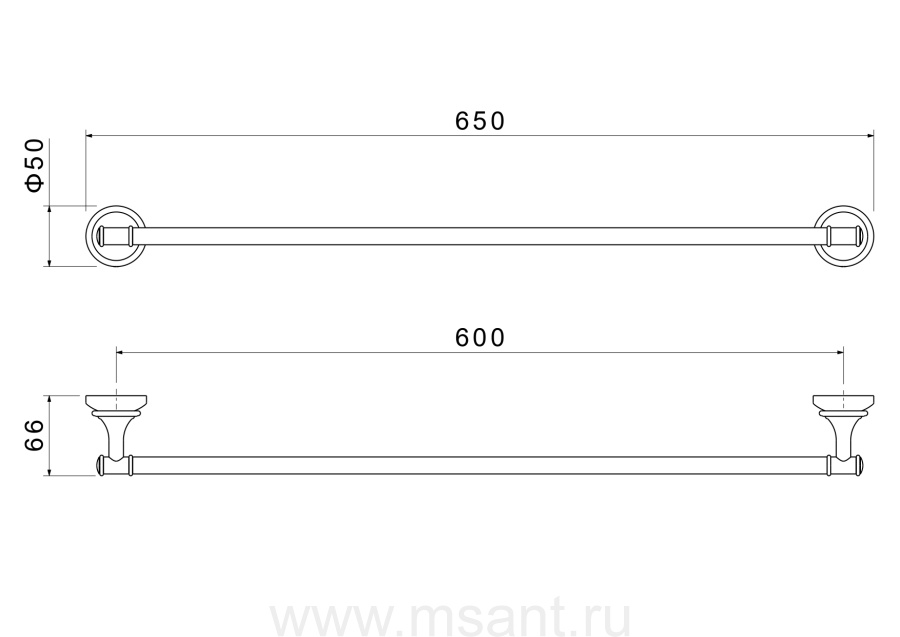 Полотенцедержатель 600 мм Aquatek, матовый черный AQ4514MB КЛАССИК