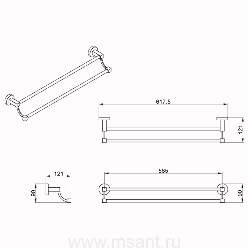 Полотенцедержатель AZARIO NESSY трубчатый двойной 58,5 см, хром (AZ-73102)