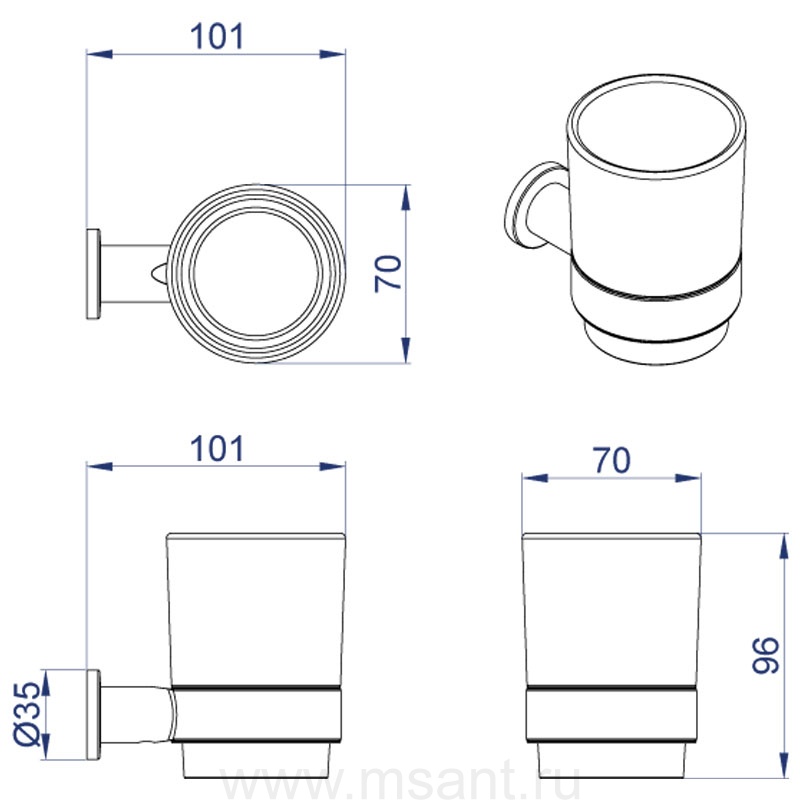 Стакан керамический AZARIO FORNY, хром (AZ-88306)