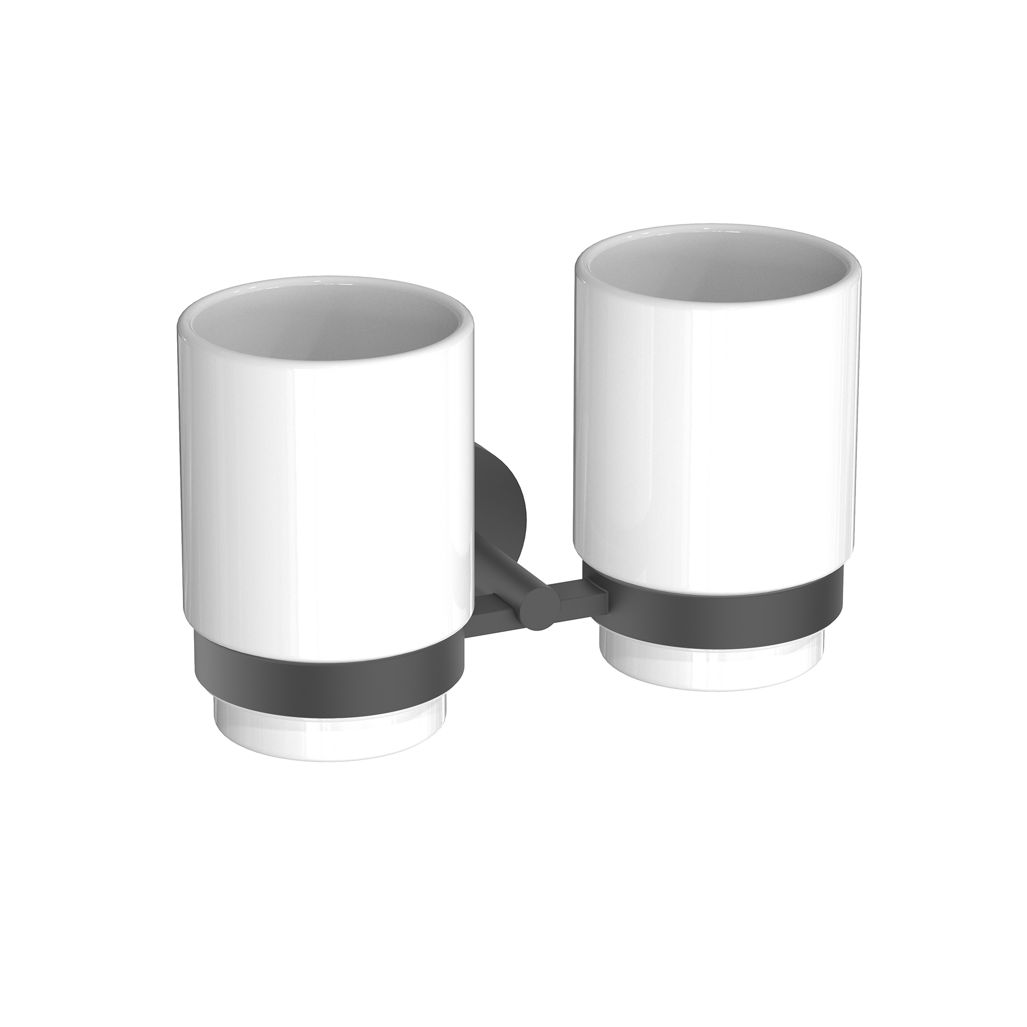 Стакан с держателем двойной Aquatek, матовый черный AQ4617MB БЕТТА