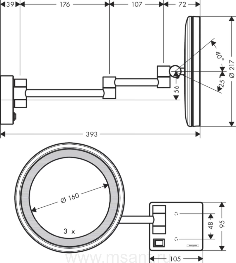 Косметическое зеркало Hansgrohe AddStoris 41790000 хром