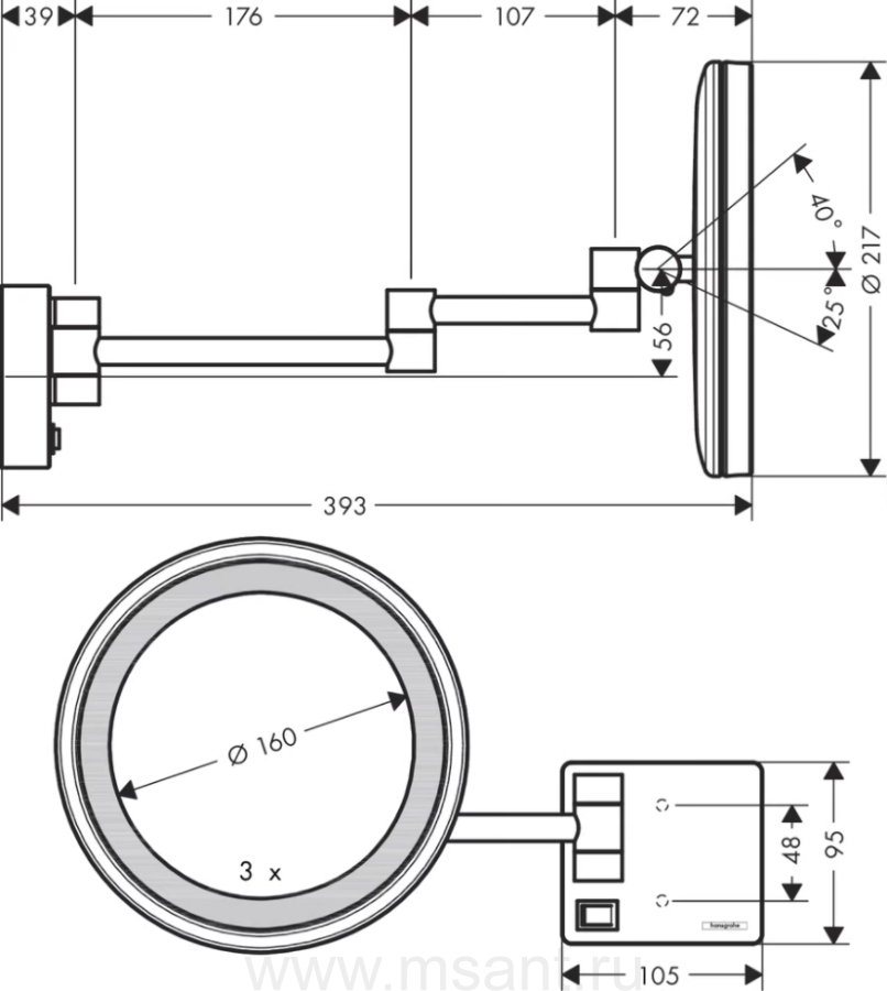 Косметическое зеркало Hansgrohe AddStoris 41790990 полированное золото