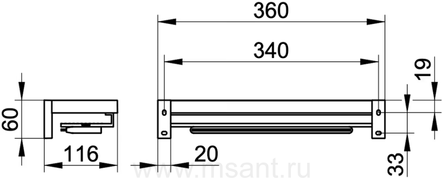 Полка Keuco Edition 90 19159010000 для душа, со стеклоочистителем