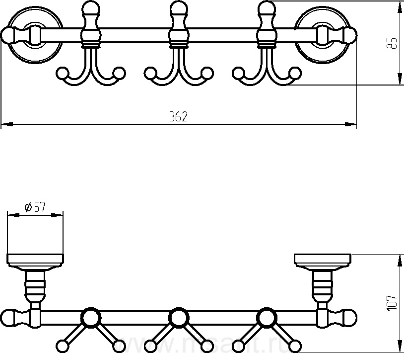 Крючок Migliore Mirella 24913 тройной, бронза