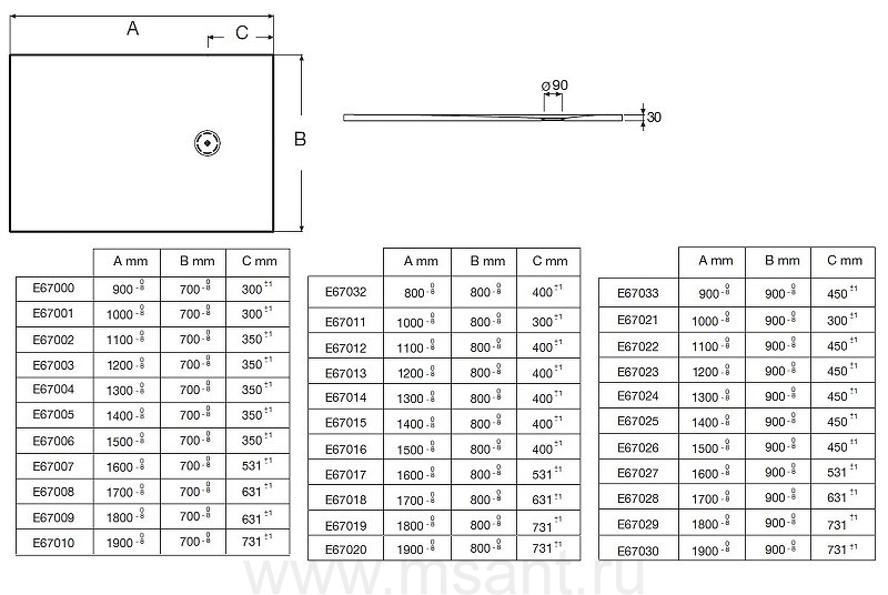 Поддон для душа Jacob Delafon Singulier 120х90 серый сланец с сифоном