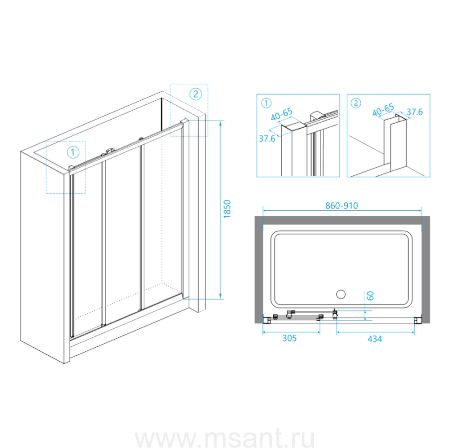 Раздвижная дверь RGW CL-11 (86-91)*185 (DTR). пр/хром. стекло шиншила 4мм (ВЫСТАВОЧНЫЙ ОБРАЗЕЦ!)