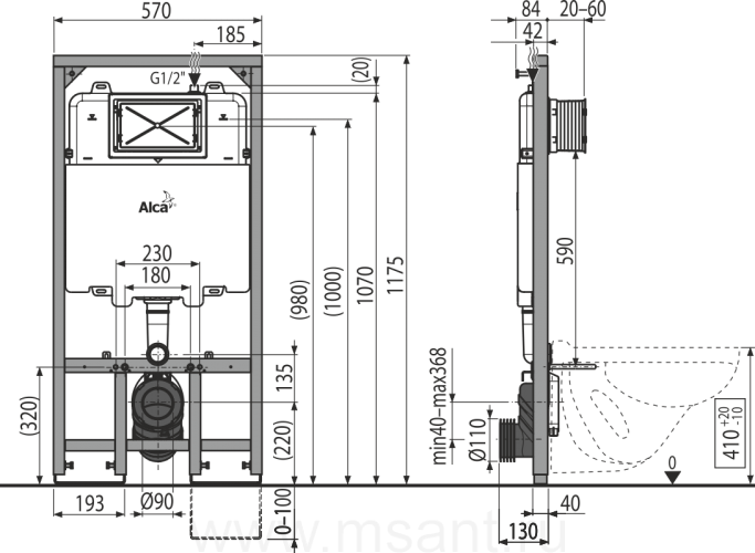 Инсталляция для унитазов AlcaPlast Sadromodul Slim AM1101/1200