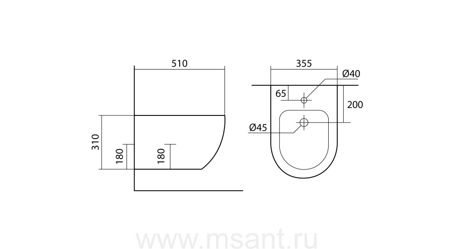 Биде подвесное AQUATEK ЕВРОПА AQ1016-00 510*355*310 мм, цвет белый
