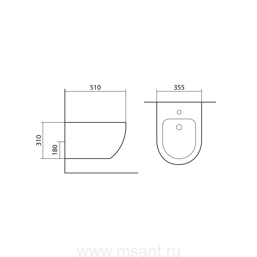 Биде подвесное AQUATEK ЕВРОПА AQ1016-MB, 510*355*310 мм, цвет черный матовый