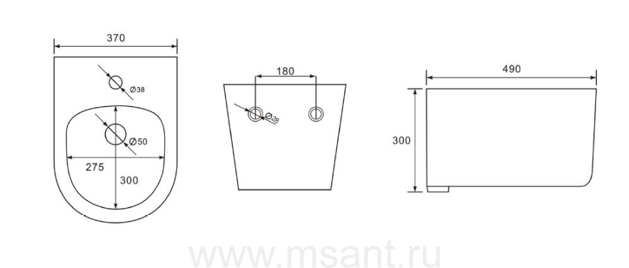 Биде подвесное AQUATEK МИЯ AQ1004-MB, 490*370*300 мм, цвет черный матовый