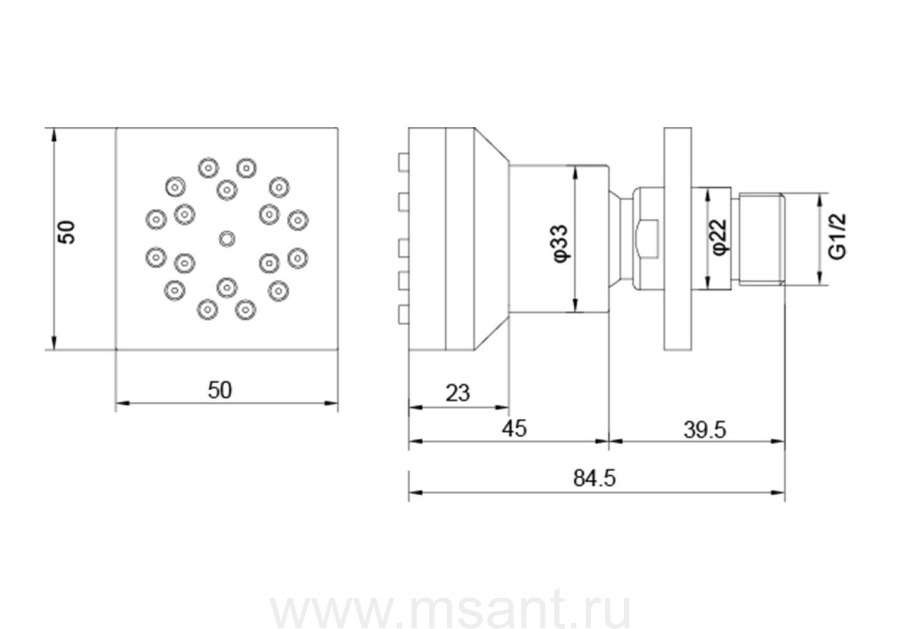 Боковая форсунка 50*50 AQUATEK AQ2098CR