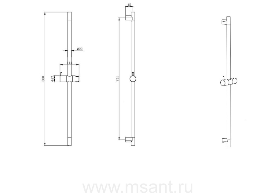 Душевая штанга AQUATEK, матовый черный AQ2000MB