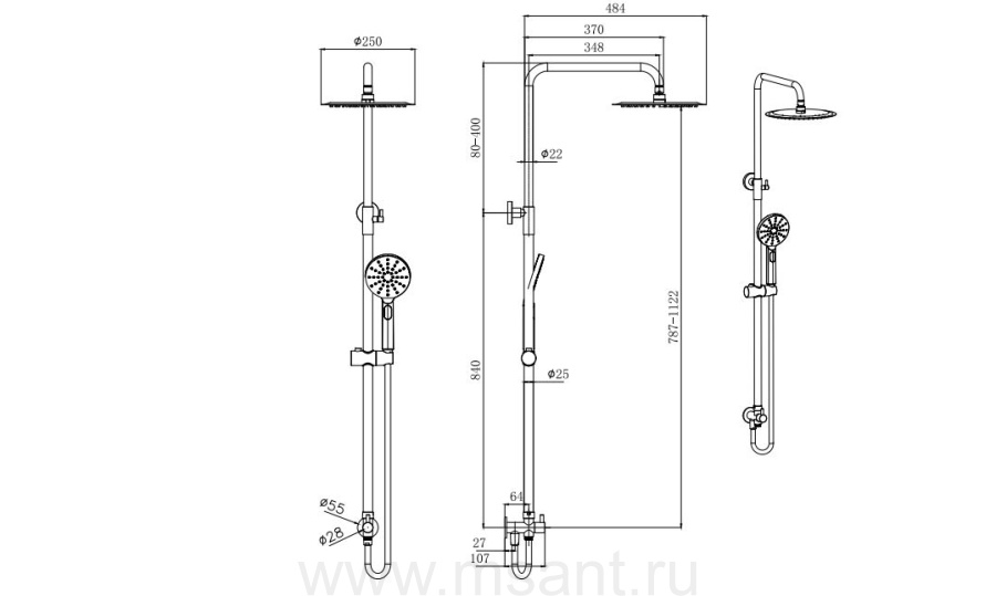 Душевая система 3jet 250мм AQUATEK Reno AQ2046CR