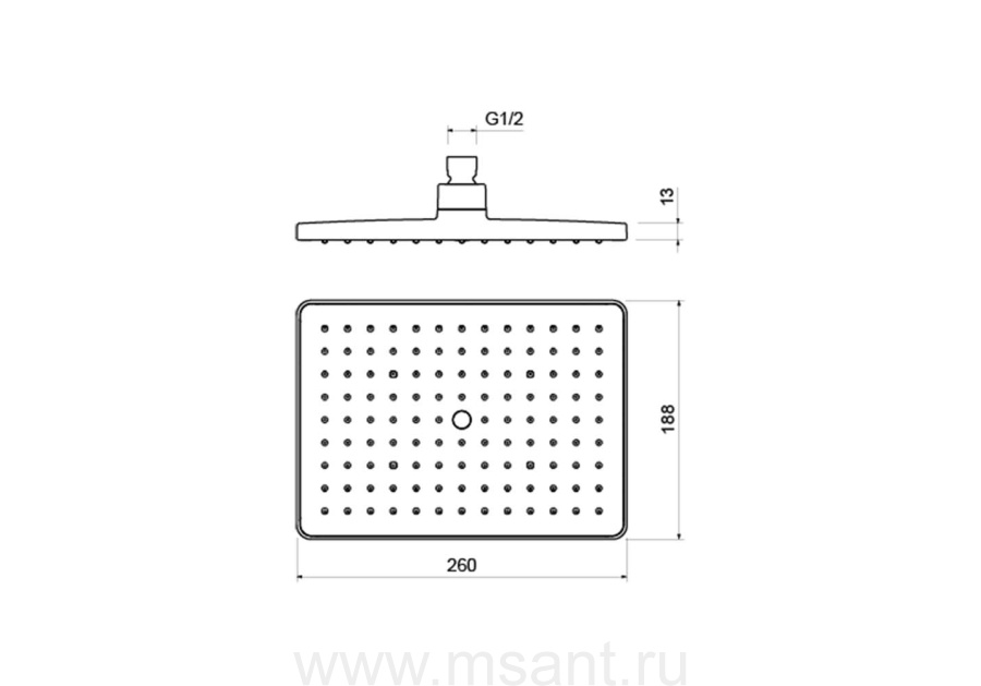 Прямоугольный верхний душ 260*188*68 мм AQUATEK, матовый черный AQ2087MB