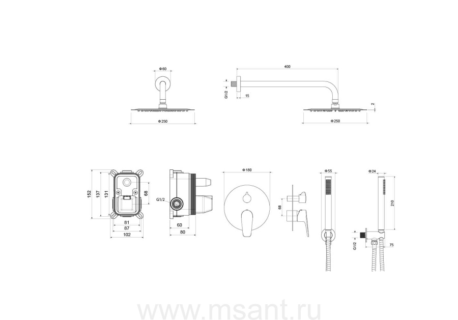 Set 3 в 1 душевой комплект AQUATEK AQ1172CR БЕТТА