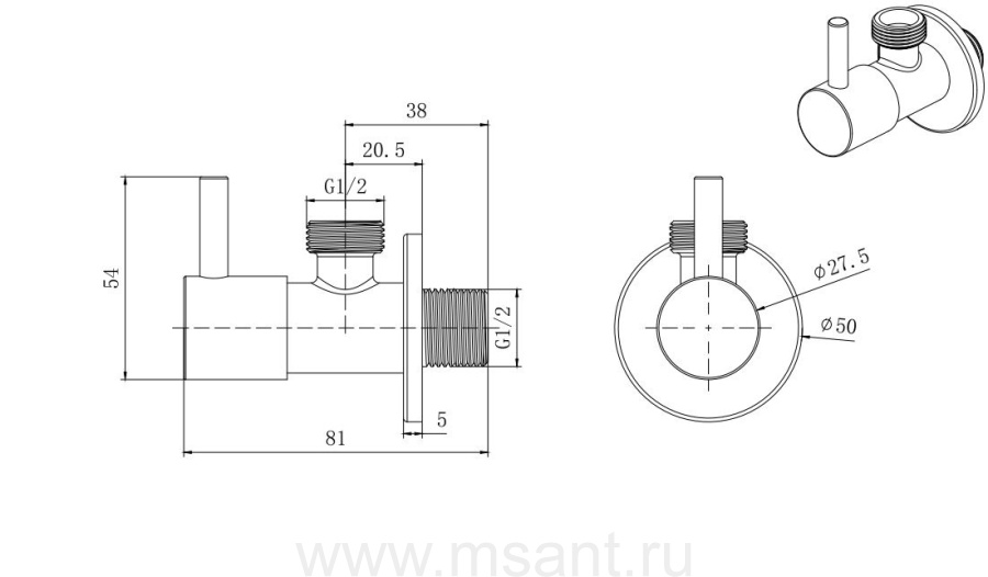 Угловой переходник AQUATEK, матовый черный AQ2450MB