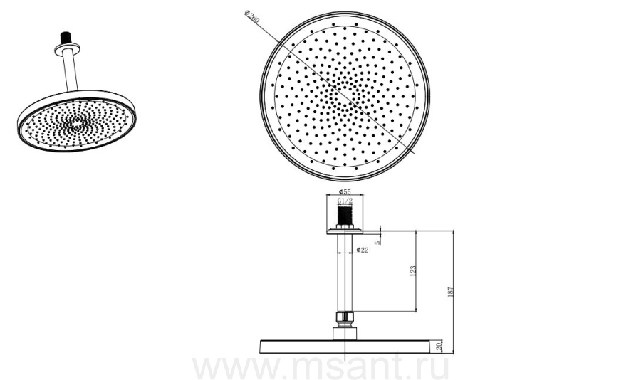 Верхний душ потолочный 260мм AQUATEK, матовый черный AQ2070MB