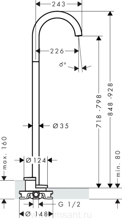 Излив Axor Uno 38412000 напольный
