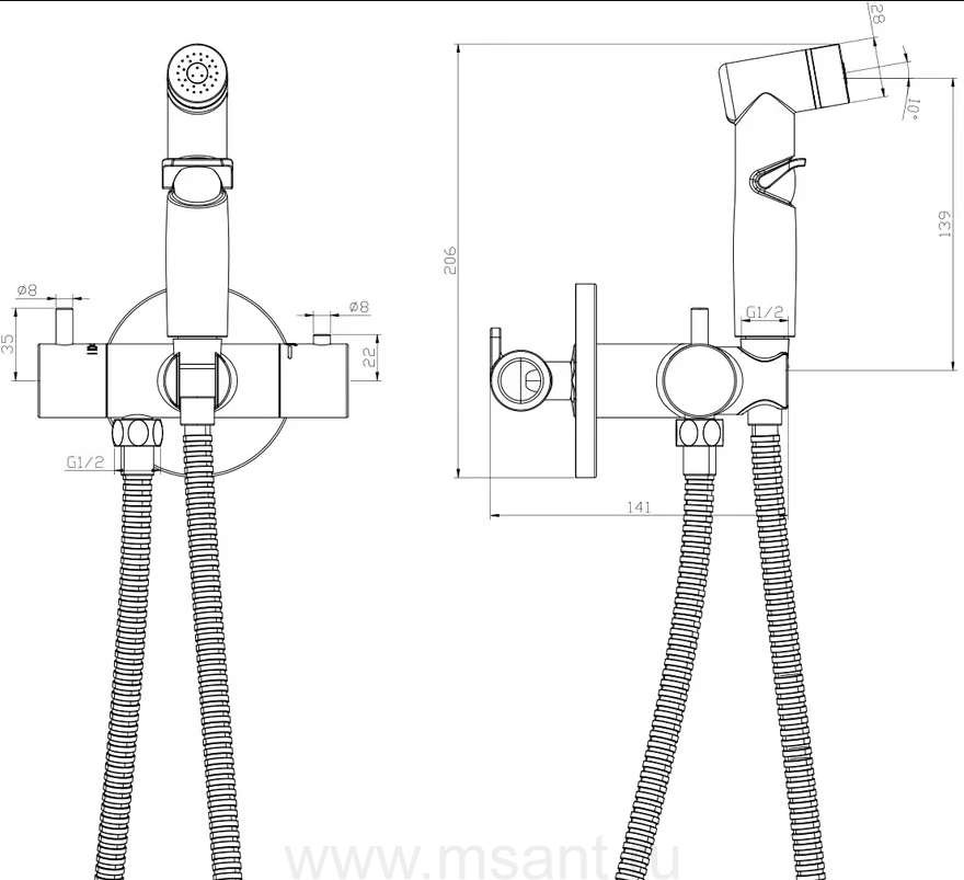 Гигиенический душ Rossinka X X25-58 с термостатическим смесителем