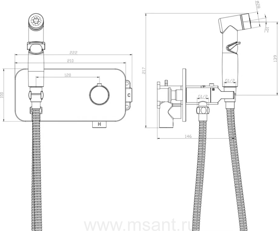 Гигиенический душ Rossinka X X25-59 с термостатическим смесителем