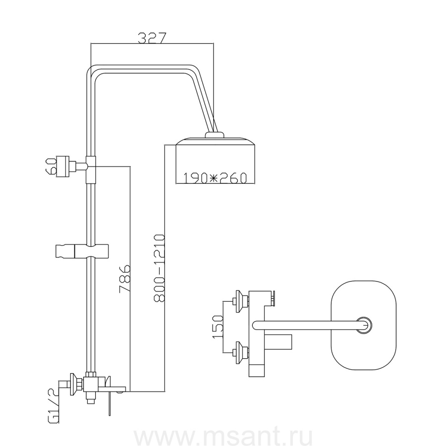 Душевая система 40к ML2412 излив лейка 3 позиции +лейка "Тропический душ" ХРОМ