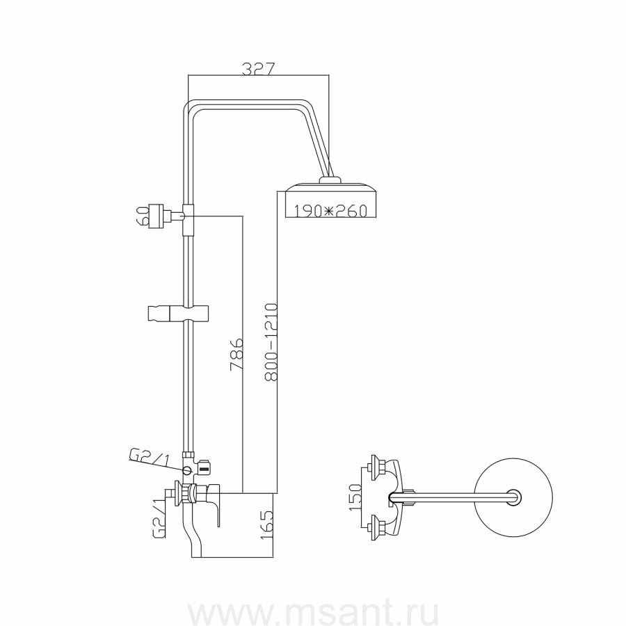 Душевая система 40к ML2416 излив лейка 3 позиции +лейка "Тропический душ" ХРОМ