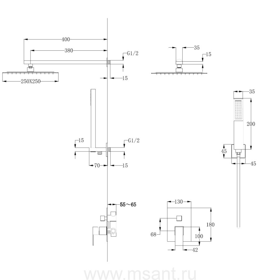 Душевая система ABBER Daheim AF8219G скрытого монтажа без излива, золото матовое