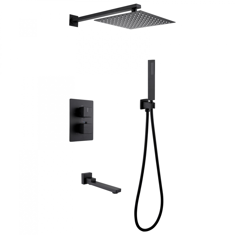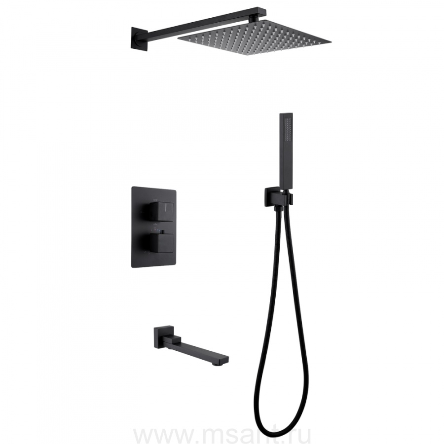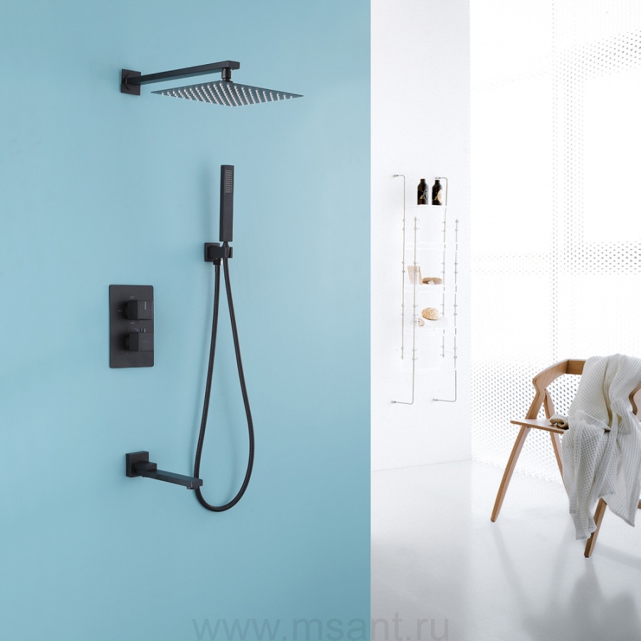 Душевая система ABBER Daheim AF8250B скрытого монтажа с изливом, термостат, черная матовая