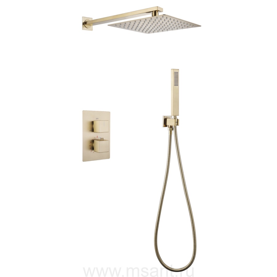 Душевая система ABBER Daheim AF8251G скрытого монтажа без излива, термостат, золото матовое