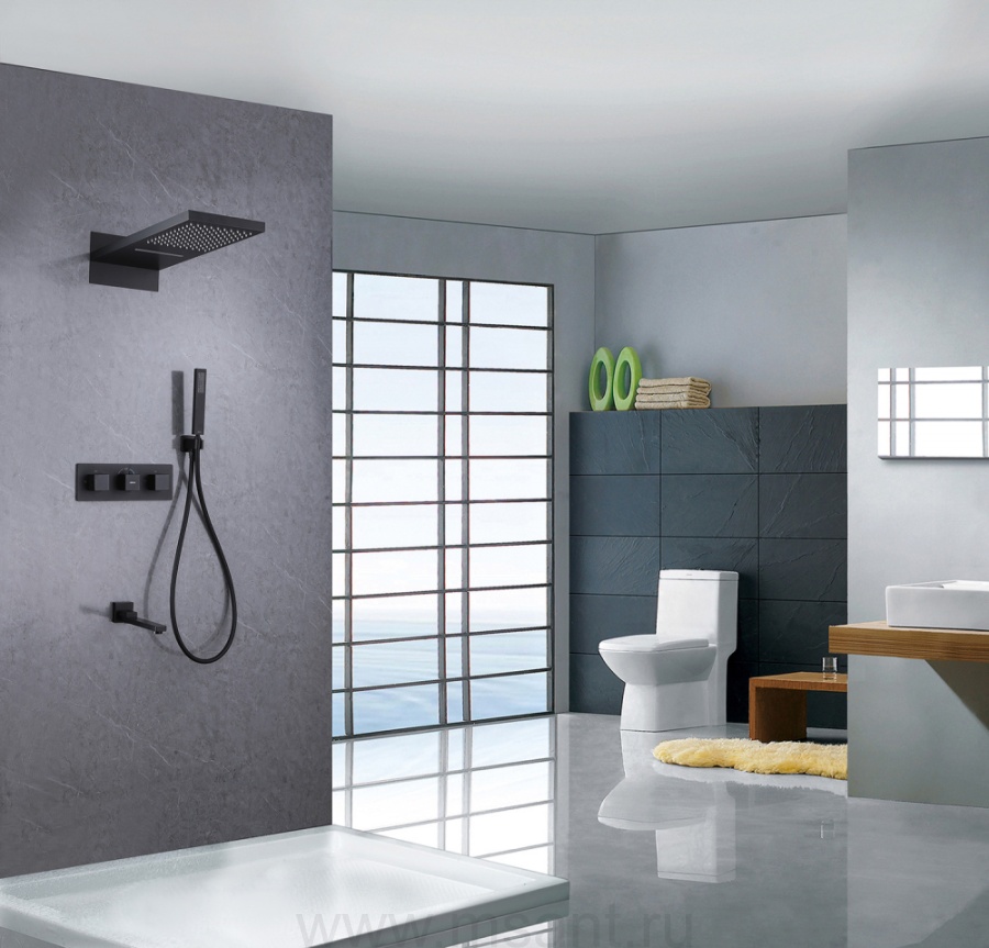 Душевая система ABBER Daheim AF8253B скрытого монтажа с изливом, термостат, черный матовый