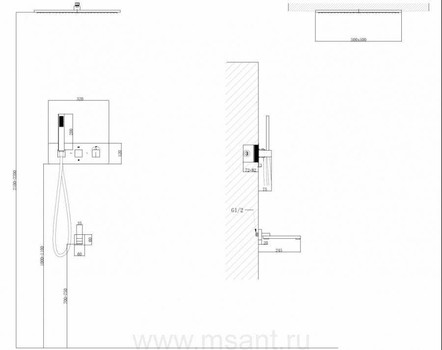 Душевая система ABBER Daheim AF8254SP скрытого монтажа с изливом, термостат, сатин