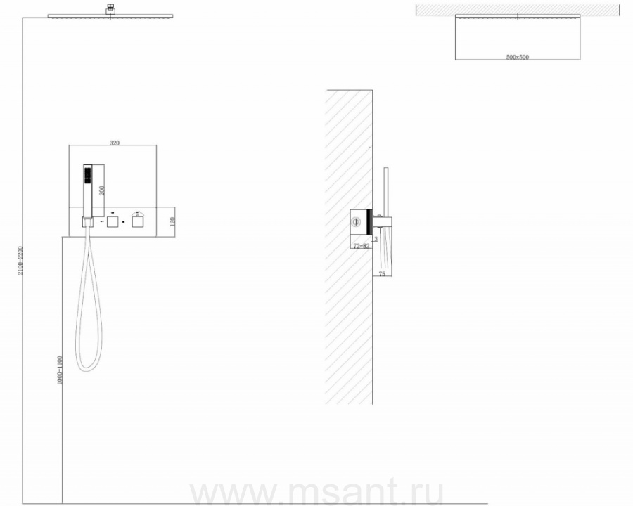 Душевая система ABBER Daheim AF8255SP скрытого монтажа без излива, термостат, сатин