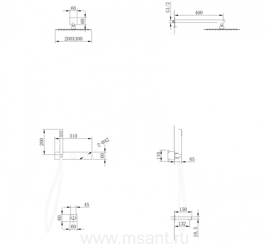 Душевая система ABBER Rund AF8717NG скрытого монтажа с изливом, никель