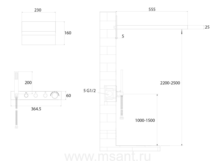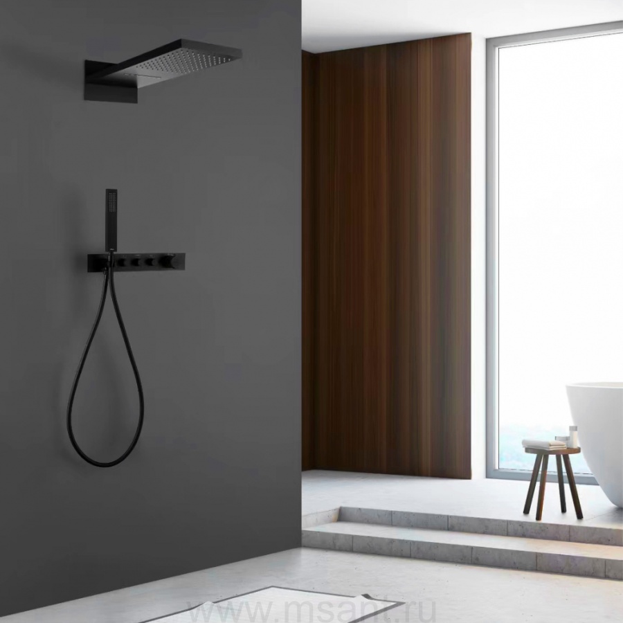 Душевая система ABBER Rund AF8752B скрытого монтажа без излива, термостат, черная матовая