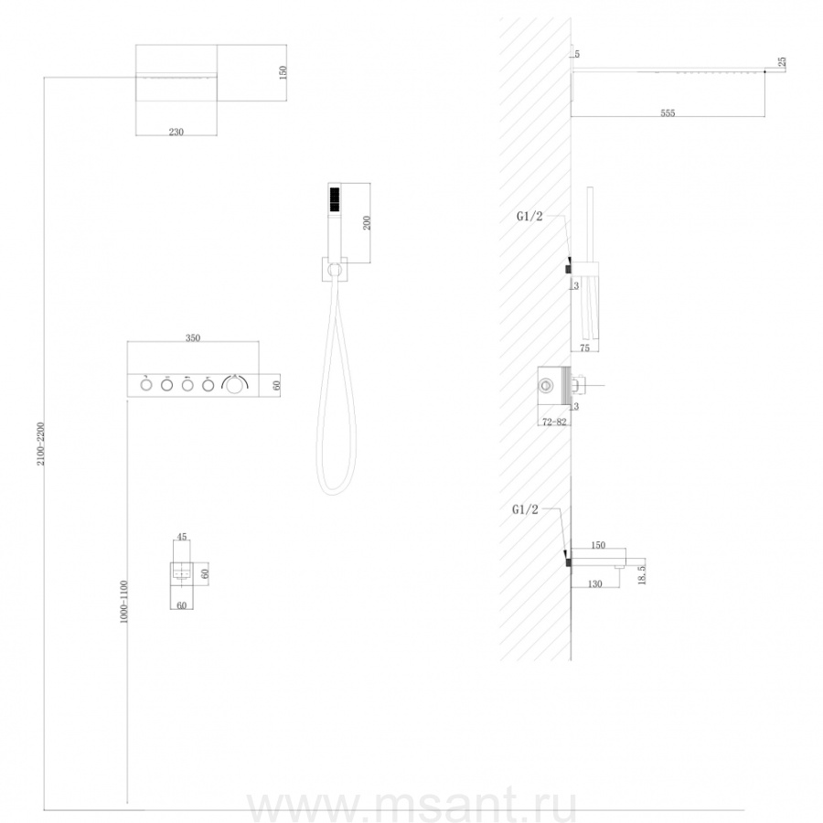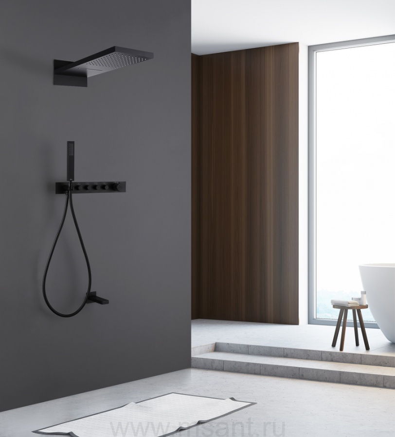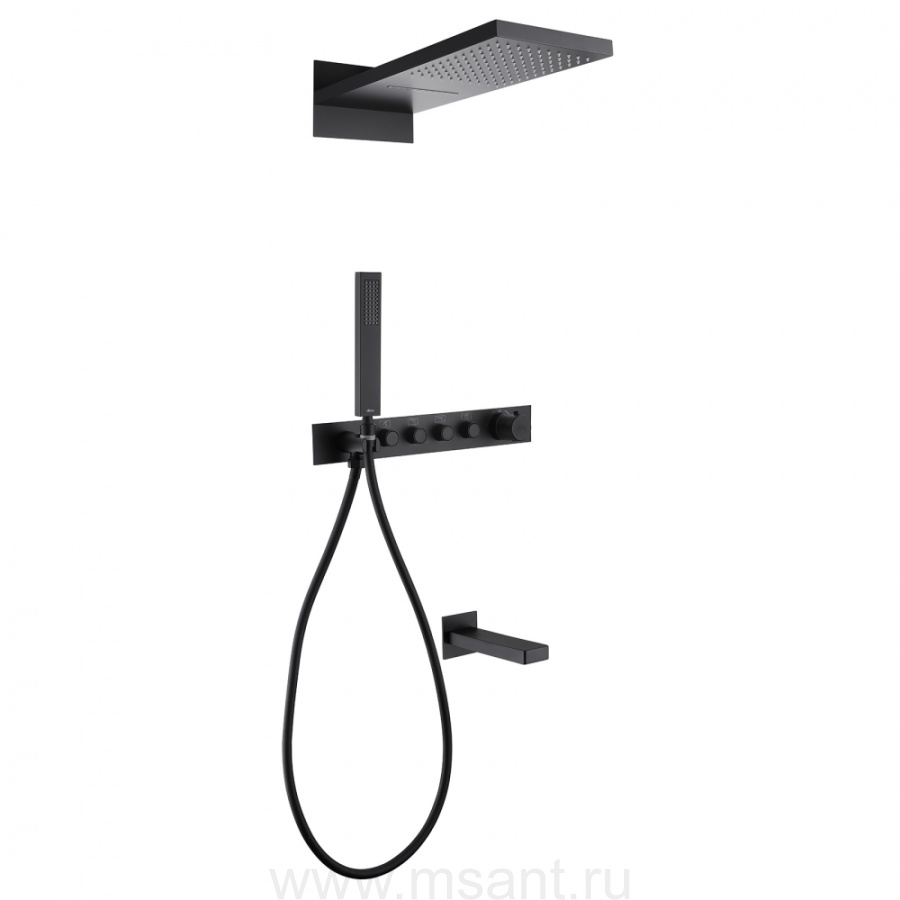 Душевая система ABBER Rund AF8753B скрытого монтажа с изливом, термостат, черная матовая