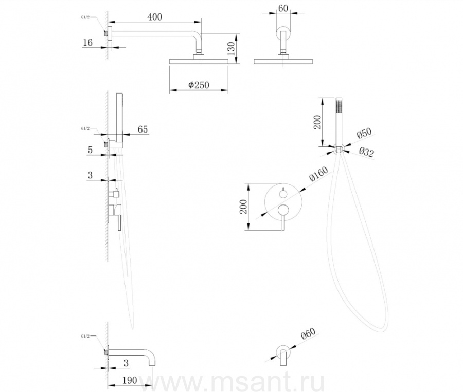 Душевая система ABBER Wasser Kreis AF8117 скрытого монтажа с изливом, хром
