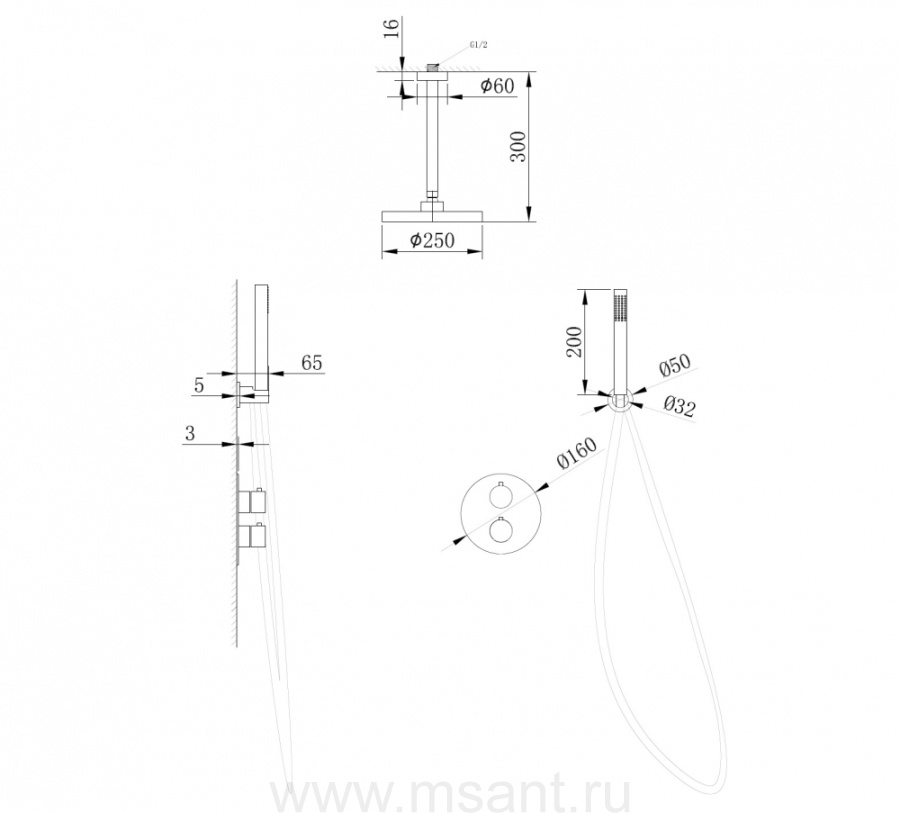 Душевая система ABBER Wasser Kreis AF8121RG скрытого монтажа без излива, розовое золото