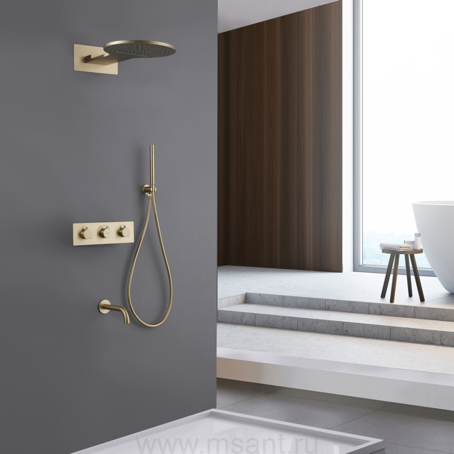 Душевая система ABBER Wasser Kreis AF8150G скрытого монтажа с изливом, термостат, золото матовое