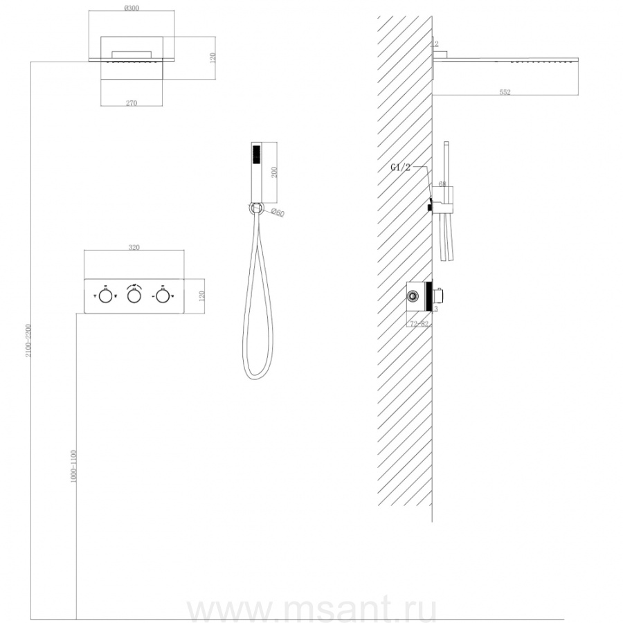 Душевая система ABBER Wasser Kreis AF8151B скрытого монтажа без излива, термостат, черный матовый