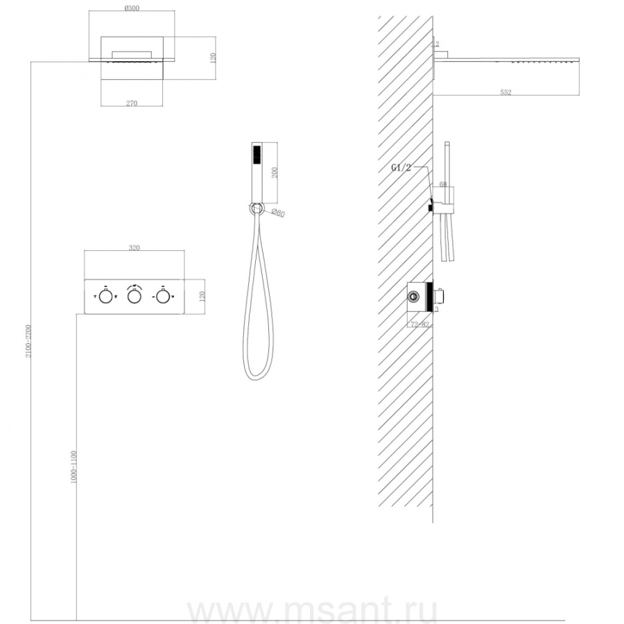 Душевая система ABBER Wasser Kreis AF8151G скрытого монтажа без излива, термостат, золото матовое