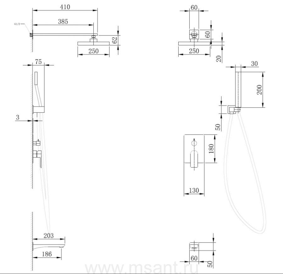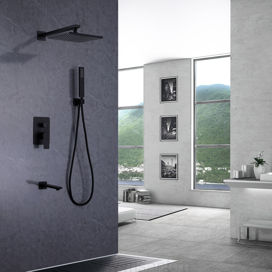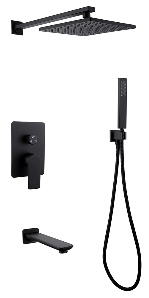 Душевая система ABBER Weiss Insel AF8017B скрытого монтажа с изливом, черная матовая